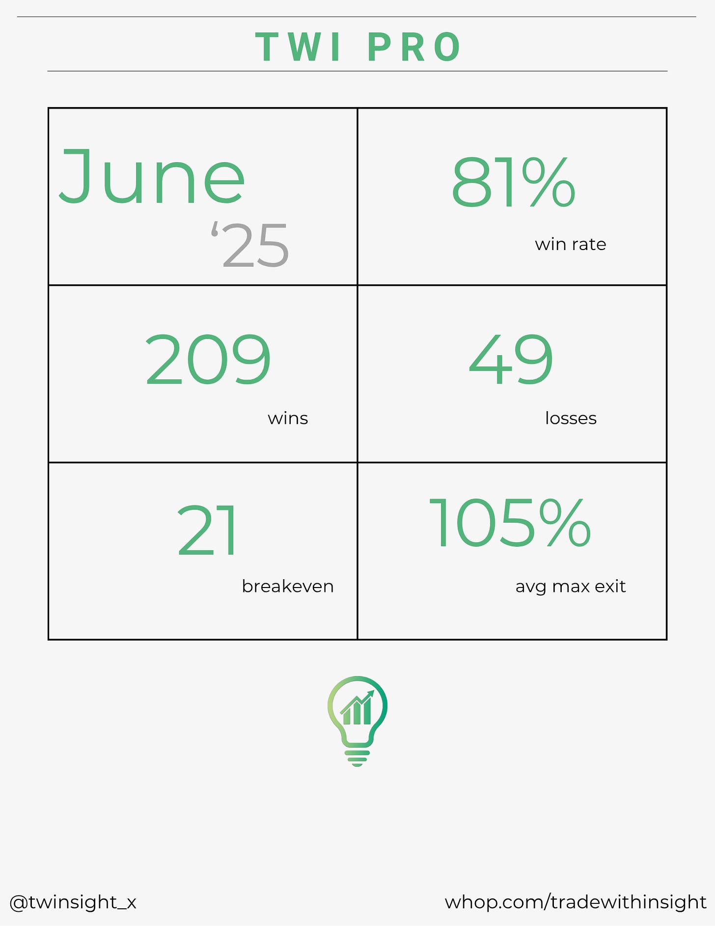 Check out our June trade performance stats; an incredible 81% win rate and 8 trades over 300%!